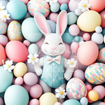 Pastel Easter Eggs and Bunny Friend