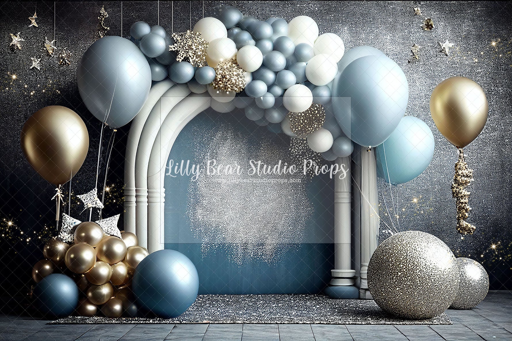 Blue and Gold Glitter Arch